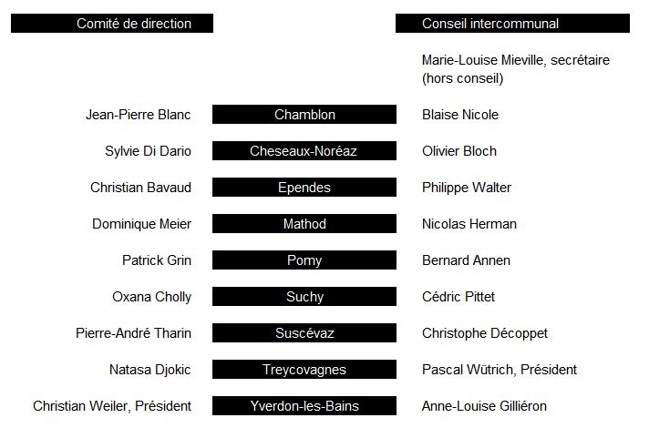 Organe délibérant de l’Association de communes Police Nord Vaudois, il est constitué de 9 délégués et de 9 suppléants, issus des neuf communes partenaires. La Présidence est actuellement assurée par Monsieur le Syndic Pascal Wuthrich de Treycovagnes.